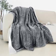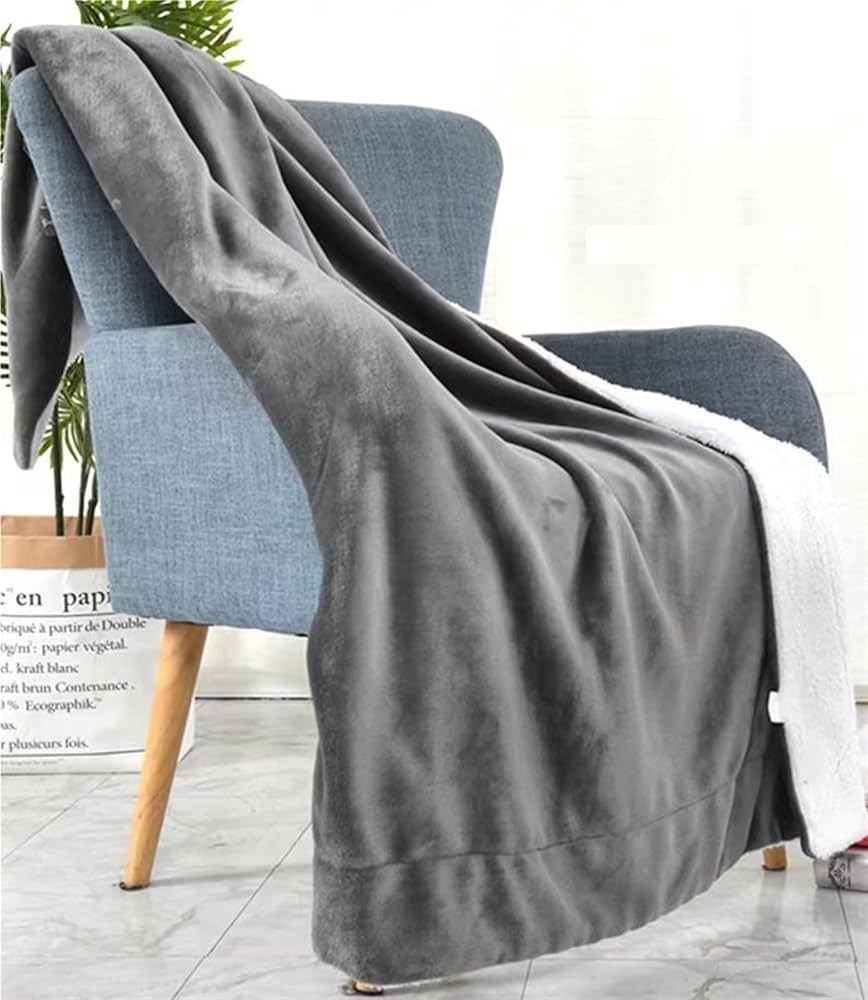 MANTA DE FELPA CON PIEL DE CARNERO PLOMO