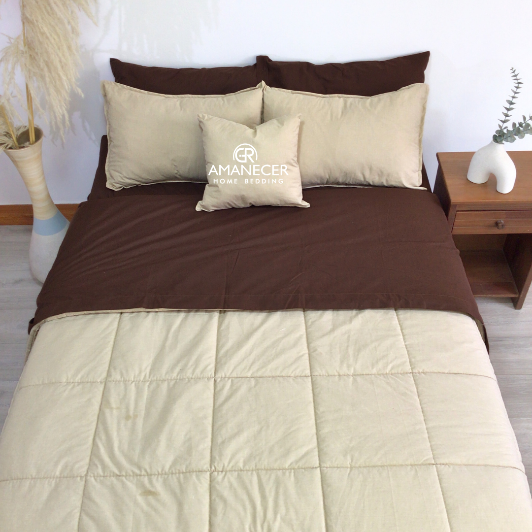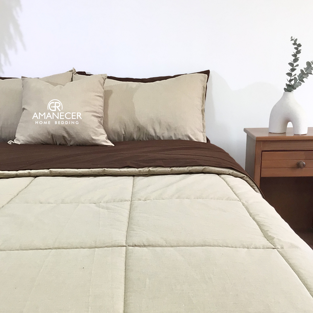 INCLUYE : Juego de sabanas y cobertor doble cara (7 piezas: sabana liga, sabana plana, edredón y 4 fundas de almohadas.