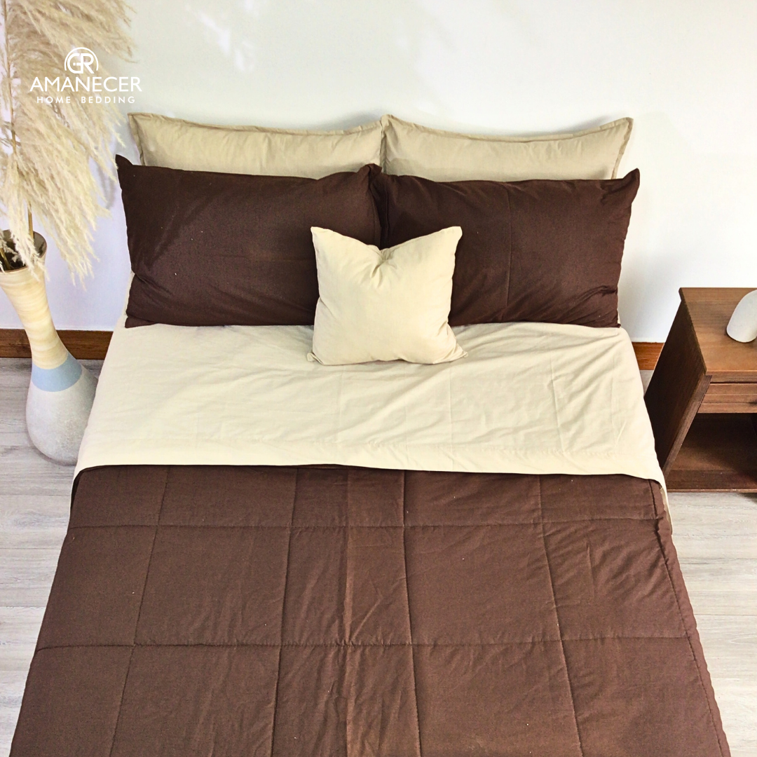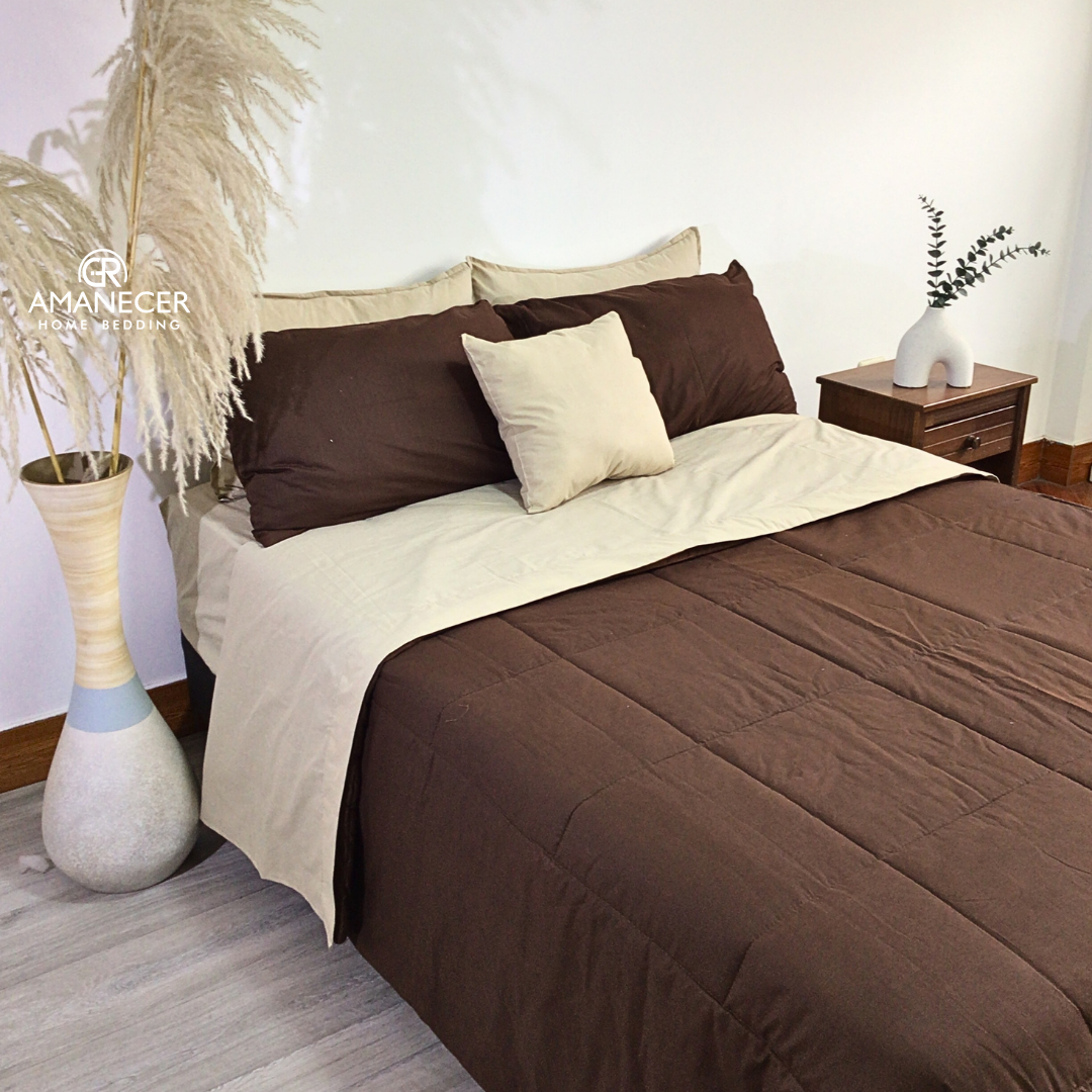 INCLUYE : Juego de sabanas y cobertor doble cara (7 piezas: sabana liga, sabana plana, edredón y 4 fundas de almohadas.