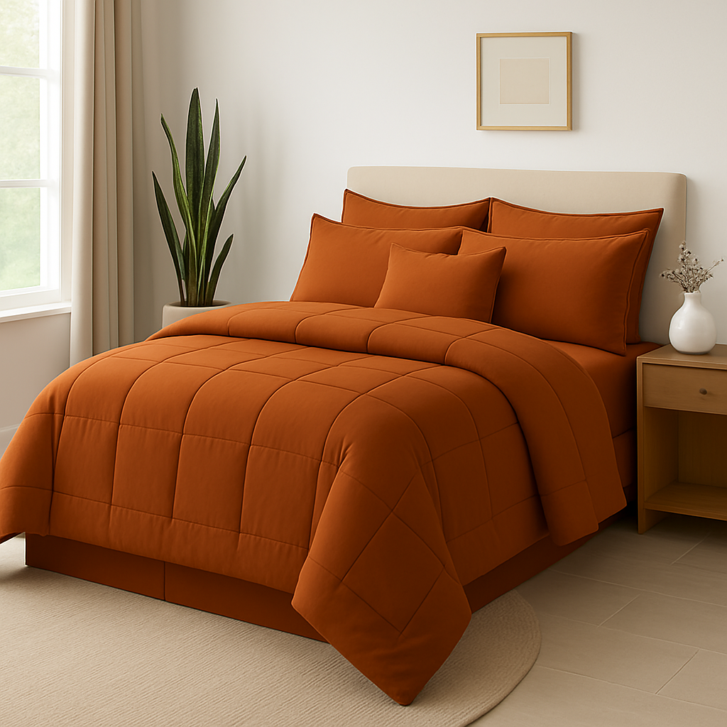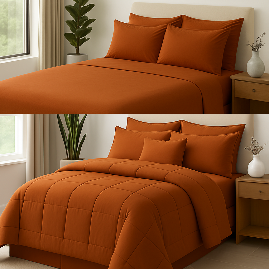 INCLUYE : Juego de sabanas y cobertor doble cara (7 piezas: sabana liga, sabana plana, edredón y 4 fundas de almohadas.
