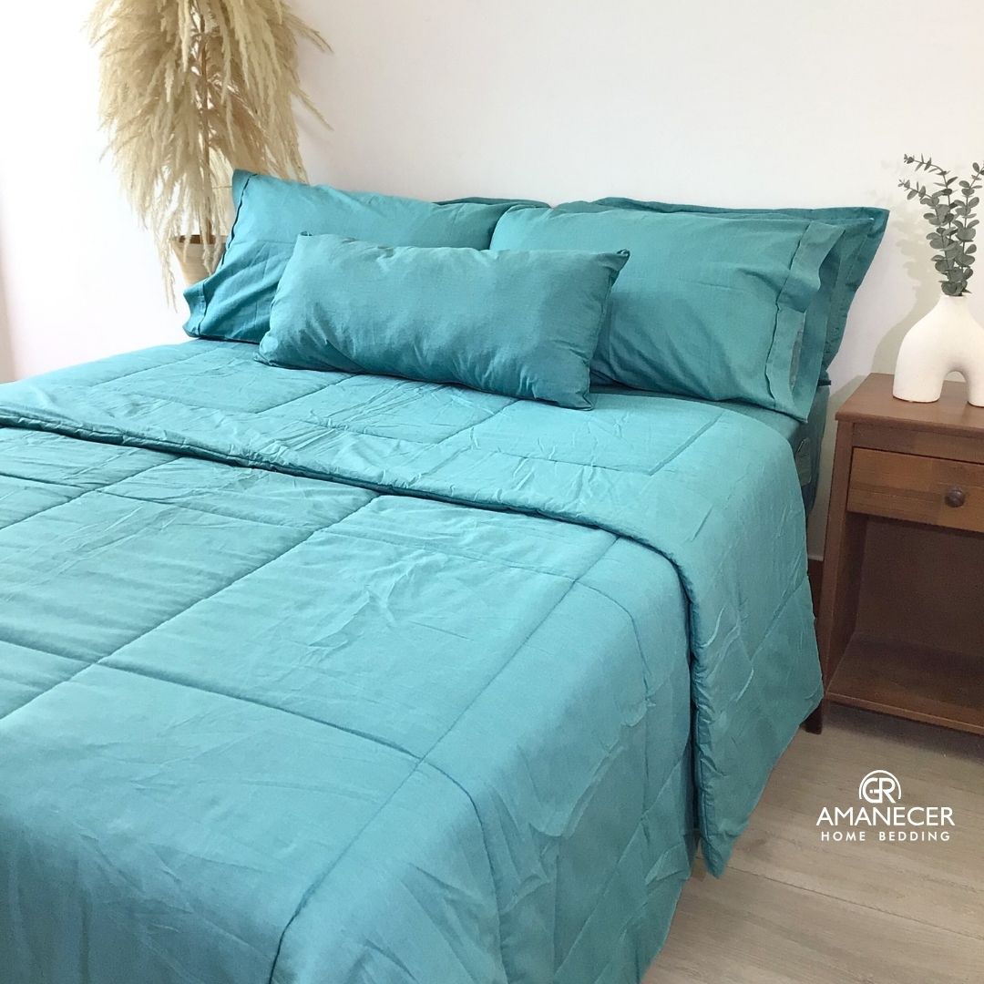 INCLUYE : Juego de sabanas y cobertor doble cara (7 piezas: sabana liga, sabana plana, edredón y 4 fundas de almohadas.